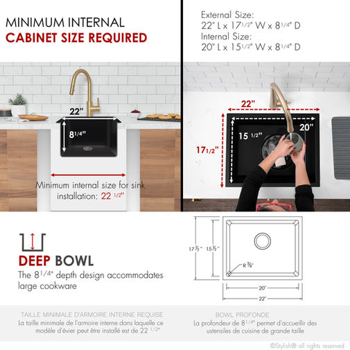 STYLISH 22'' ASPEN S-822N Black Composite Granite Kitchen Sink