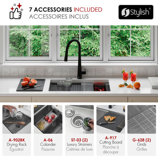 STYLISH 28'' VERSA28 S-628WK Workstation 60/40 Double Bowl Kitchen Sink