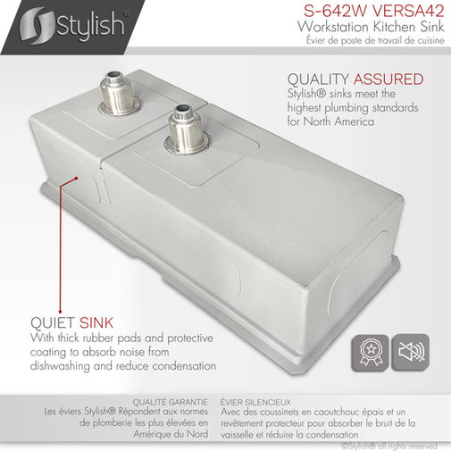 STYLISH 42'' VERSA42 S-642W Workstation 70/30 Double Bowl Kitchen Sink