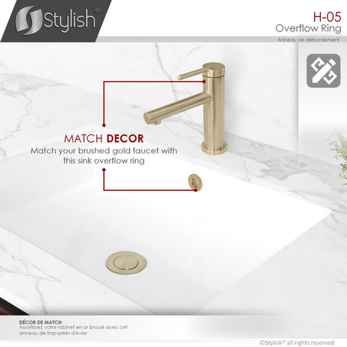STYLISH Brushed Gold Sink Basin Trim Overflow Cover H-05